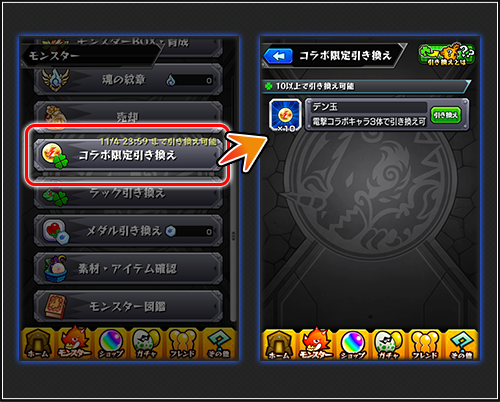 【コラボキャラを「デン玉」へ「ラック引き換え」が可能!】