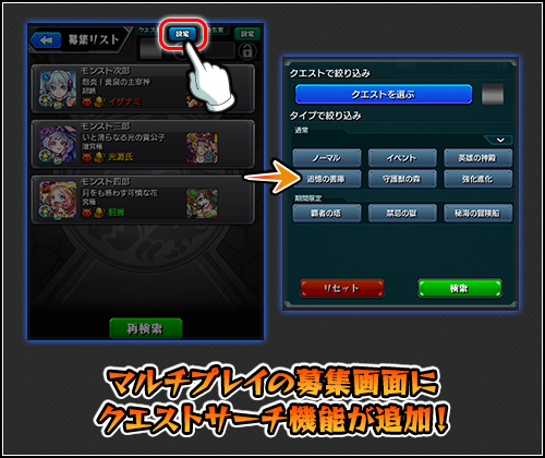 マルチプレイでクエストに参加する際、募集されているクエストを絞り込みできるように!