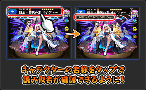 キャラクターの詳細画面にて、キャラクターの名称をタップすると読み仮名が確認できるようになります!